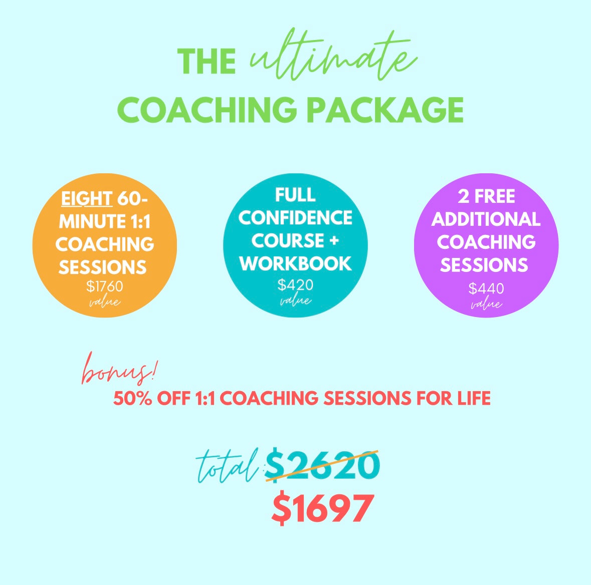 - TEN (60 minute) 1:1 life coaching sessions with me (PLUS 2 free bonus sessions to use throughout the year you've signed up!)